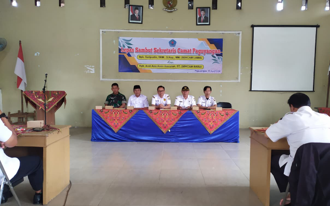 Brebes, mediapenanews.net — Pemerintah Kecamatan Paguyangan menggelar acara lepas sambut Sekretaris Camat (Sekcam) di Aula Kecamatan Paguyangan, Rabu (22/4/2026). Dalam kegiatan tersebut, Suripudin resmi melepas jabatannya sebagai Sekcam Paguyangan dan digantikan oleh Andi Aziz Amin Amrulloh.