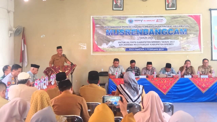 Brebes, mediapenanews.net – Pemerintah Kecamatan Paguyangan menggelar Musyawarah Perencanaan Pembangunan (Musrenbang) tingkat kecamatan Tahun Anggaran 2026 sebagai forum strategis untuk menyerap aspirasi dan merumuskan prioritas pembangunan. Kegiatan tersebut dihadiri unsur legislatif, Forkopimcam, pemerintah desa, serta tokoh masyarakat dan agama se-Kecamatan Paguyangan di aula kecamatan Paguyangan, Selasa 3/2/2026.
