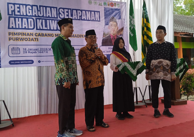 Banyumas || mediapenanews.net – SMP Muhammadiyah Purwojati kembali menorehkan tonggak sejarah baru dengan meluncurkan buku perdananya berjudul Panduan Ibadah Praktis: Sebuah Kerangka Pembentukan Karakter pada Siswa. Peluncuran buku tersebut digelar bertepatan dengan agenda rutin Pengajian Selapanan Ahad Kliwon PCM Purwojati di lingkungan SMP Muhammadiyah Purwojati, dan disaksikan ratusan jamaah pengajian, Ahad (18/1/2026).